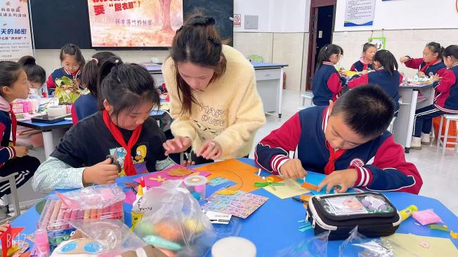《秋天的大树为什么要“脱衣服”?》课堂伊始,老师以“自然侦探”的身份亲切问候每位同学,引发了孩子们浓厚的兴趣。在“我们的疑问?”环节,老师通过对比夏绿秋黄的树木图片,引导同学们积极思考、踊跃发言。随着课程深入,当听到“小精灵用阳光做魔法,给大树制造好吃的”时,孩子们睁大了好奇的眼睛,仿佛亲眼见到了树叶中忙碌的绿色小身影。这堂充满童趣与温情的落叶科普课,在孩子们的欢声笑语中圆满结束。相信这个秋天,每当走过飘满落叶的小路,孩子们都会想起那棵会“脱衣服”的聪明大树,和它背后那段关于生命与成长的美丽秘密。