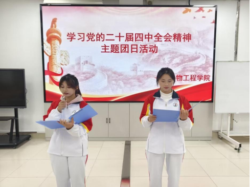 为深入学习领悟党的二十届四中全会精神,充分发挥榜样引领作用,增强同学们的学习能力和综合素质,生物工程学院于2025年11月19日在主楼2-3教室组织开展了学习党的二十届四中全会精神主题团日活动。2025级学生积极参与。