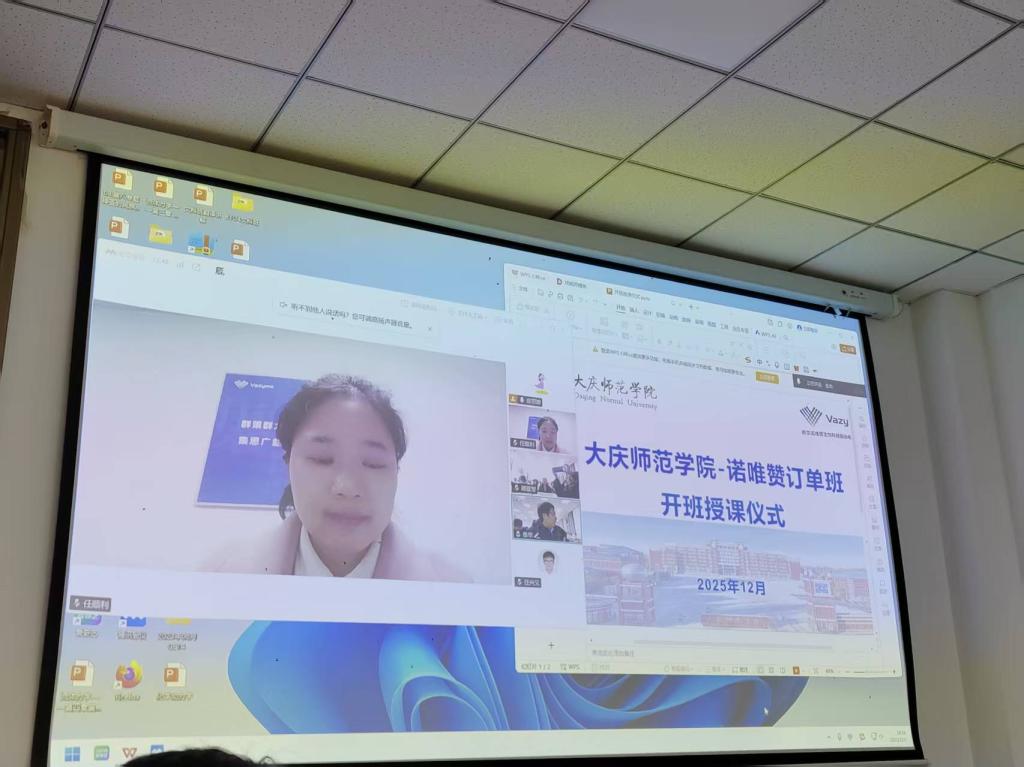 2025年12月2日,授课仪式拉开订单班开班授课的序幕,大庆师范学院教务处处长张国发教授,生物工程学院党总支书记、院长任国领,以及南京诺唯赞生物科技股份有限公司生命科学事业部质量总监任顺利、人力资源部HRBP经理任兴义等校企双方领导与师生代表齐聚一堂,共同见证了这一重要时刻。