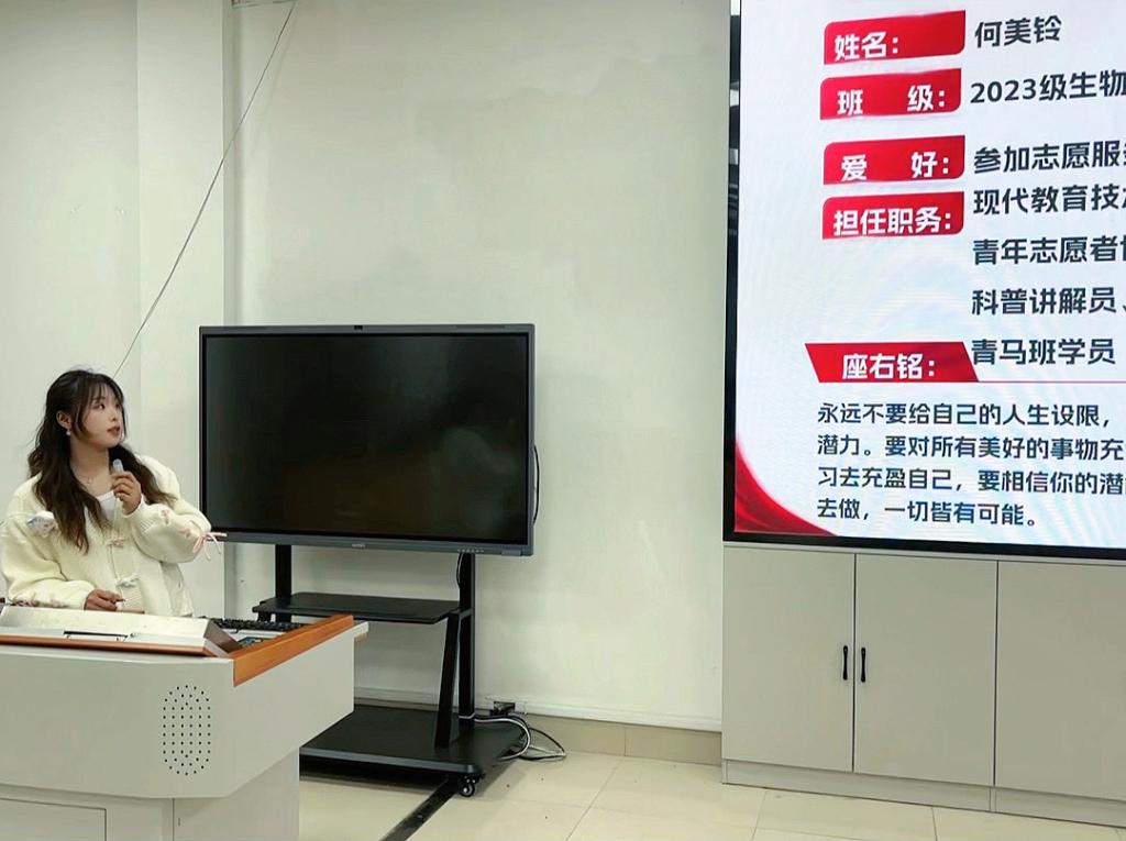 何美铃同学率先以“科研路上的坚守与突破”为题,分享了自己的科研历程。从实验屡次失败、数据不理想,到沉心调试、总结经验,最终顺利完成科研任务、发表成果,她用自身经历勉励学弟学妹,科研之路没有捷径,“坚持是通往成功的唯一捷径”,面对挫折要迎难而上、不轻言放弃。
